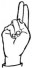 На ћирилици написано РАДЕ БЈЕЛОПЕТРОВИЋ састоји се из 17 слова [?]. Исписано ћириличном једноручном азбуком за глувонеме: